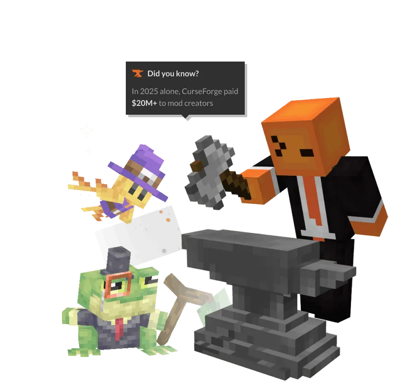 Explore over 250K mods from an active gamer community, and a platform that supports, enables, and pays the creators behind your favorite Minecraft mods.
